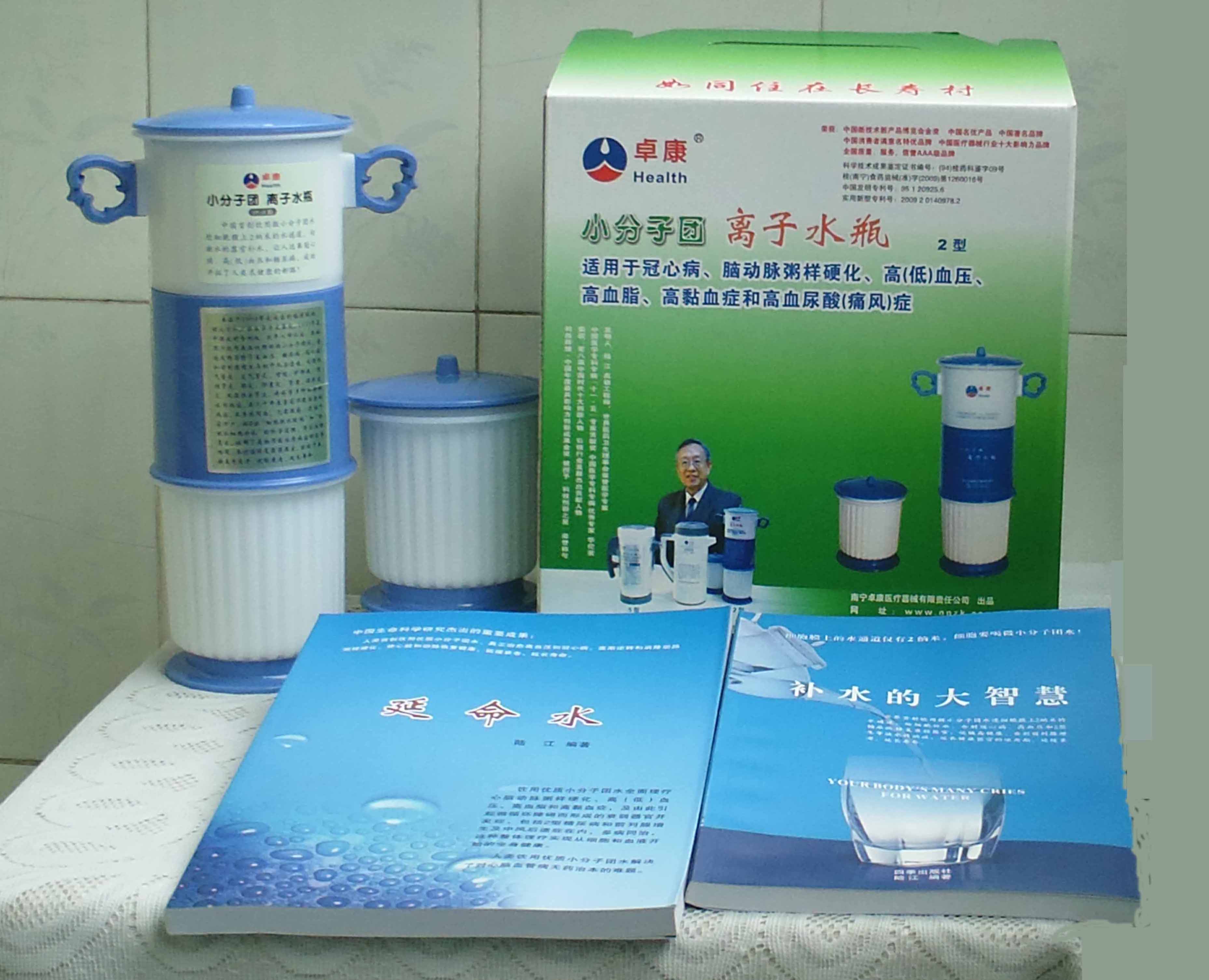 本品大量用戶的使用效果表明,能治愈冠心病、腦動(dòng)脈硬化、原發(fā)性高(低)血壓、高血脂、高粘血癥、高血尿酸癥(痛風(fēng))和2型糖尿病、衰弱器官并發(fā)癥(前列腺增生、腎衰與尿毒癥)及中風(fēng)后遺癥等療效好。產(chǎn)品配信譽(yù)卡。使用壽命30年,不換芯,易清洗。團(tuán)購(gòu)優(yōu)惠。從郵局匯款,匯費(fèi)1%,地址按本頁(yè)下方地址、聯(lián)系人寫。從銀行匯款,請(qǐng)點(diǎn)擊[聯(lián)系匯款]欄,從工商銀行匯款,建設(shè)銀行、農(nóng)業(yè)銀行匯款,均免收匯費(fèi),匯款后20--30分鐘內(nèi)發(fā)短信,可用微信轉(zhuǎn)帳,均免匯費(fèi),微信號(hào)即手機(jī)號(hào)13768308380。匯款后,告知你的姓名和地址,我公司聯(lián)系人手機(jī)號(hào)是:13768308380卓康牌離子水瓶為我公司獨(dú)家生產(chǎn),郵購(gòu)產(chǎn)品配《補(bǔ)水的大智慧》彩印書(shū)一本,另配四季出版社出版的新書(shū)《補(bǔ)水的大智慧》一本,并配光盤一張(含央視主持人釆訪陸江的對(duì)話視頻)。目前市場(chǎng)和"淘寶網(wǎng)"上有人兜售假冒的偽品,望讀者審察辯別真?zhèn)危旒僬哓飧`假冒本公司的各種認(rèn)證、獲獎(jiǎng)獎(jiǎng)項(xiàng)、專利號(hào)和外包裝盒上的中英文字,包括科技成果的鑒定意見(jiàn)等,請(qǐng)讀者注意防偽。如何識(shí)別假貨?已經(jīng)買了假貨怎么辦?(請(qǐng)點(diǎn)擊[打假掠影][打假掠影])。